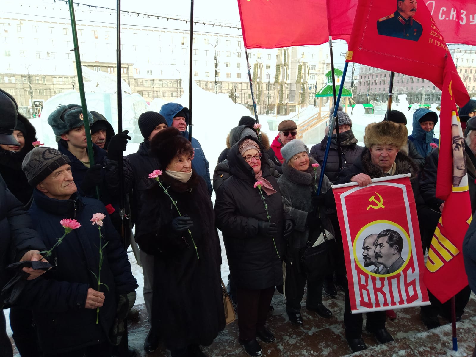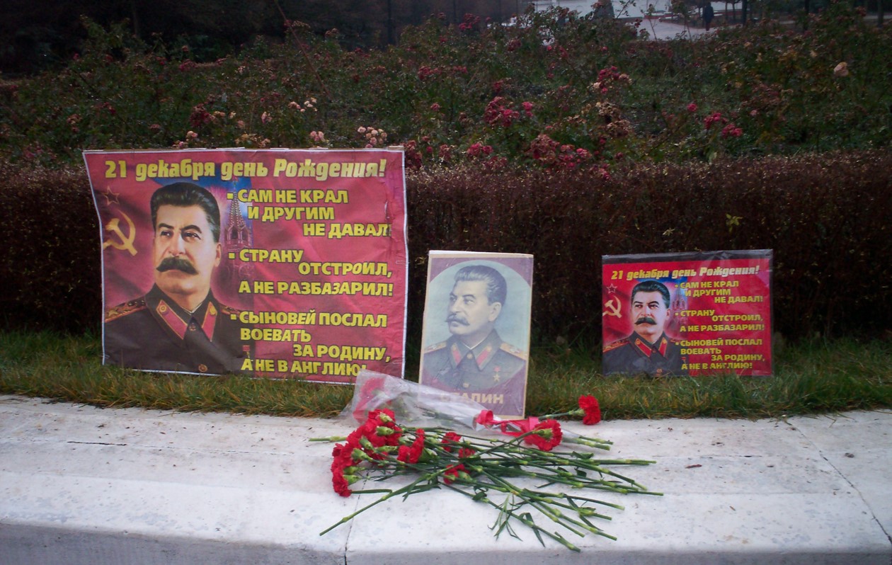 К бывшим местам под памятниками И. В. Сталина и памятниками В. И. Ленина большевики возложили цветы.