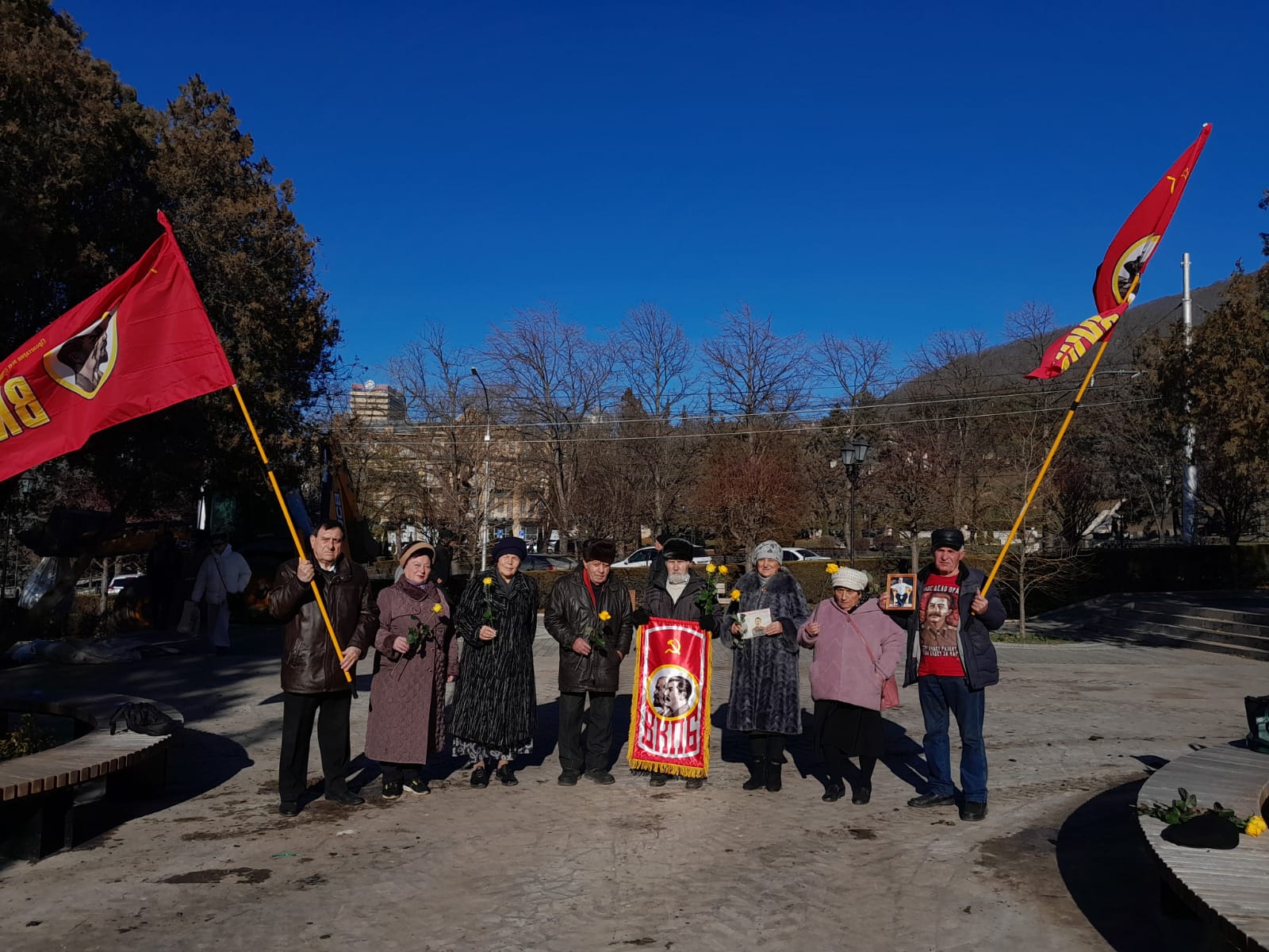 Мы поздравляем ВАС, дорогие друзья, с 145-летием со дня рождения И.В. Сталина и желаем ВАМ несгибаемой воли и успехов в преодолении любых трудностей и всегда побеждать классового врага, быть верными до конца делу пролетарского интернационализма, делу Ленина-Сталина и заветов Нины Александровны Андреевой в борьбе против империализма, против фашизации правительств капиталистических стран, за будущую победу социализма на пути к коммунизму на нашей планете Земля!