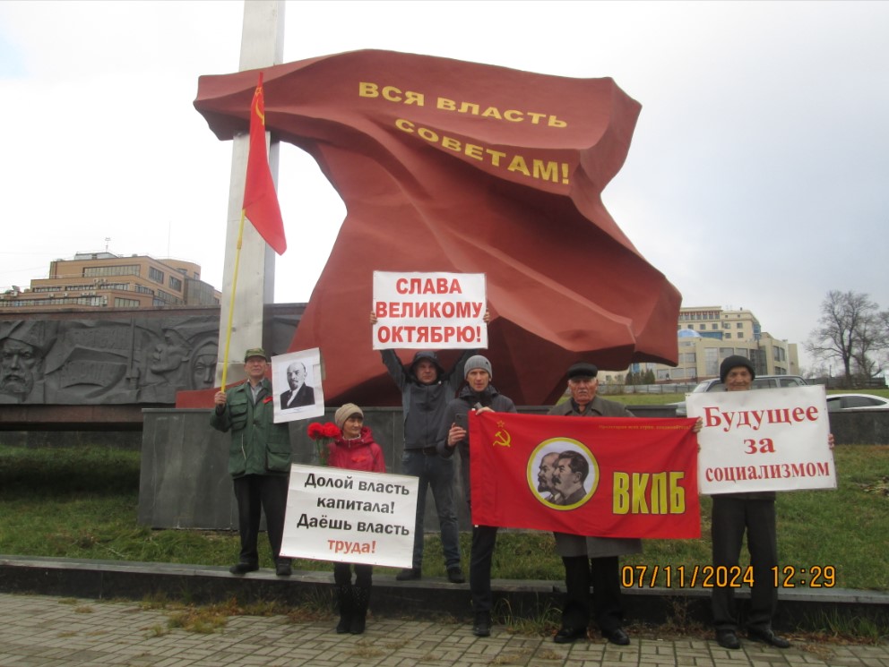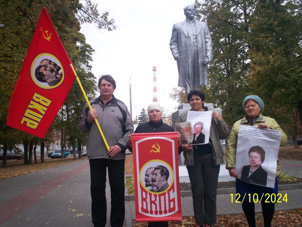 Большевики выставили: Штандарт ВКПБ, красные флаги ВКПБ с изображением вождей В. И. Ленина и И. В. Сталина, красные флаги СССР. Распространялись газеты №12 «Серп и Молот БОЛЬШЕВИКА», календари ЦК ВКПБ на 2025 г. Проводилась агитационная работа. Состоялось памятное открытое собрание ВКПБ, посвящённое этой памятной дате.