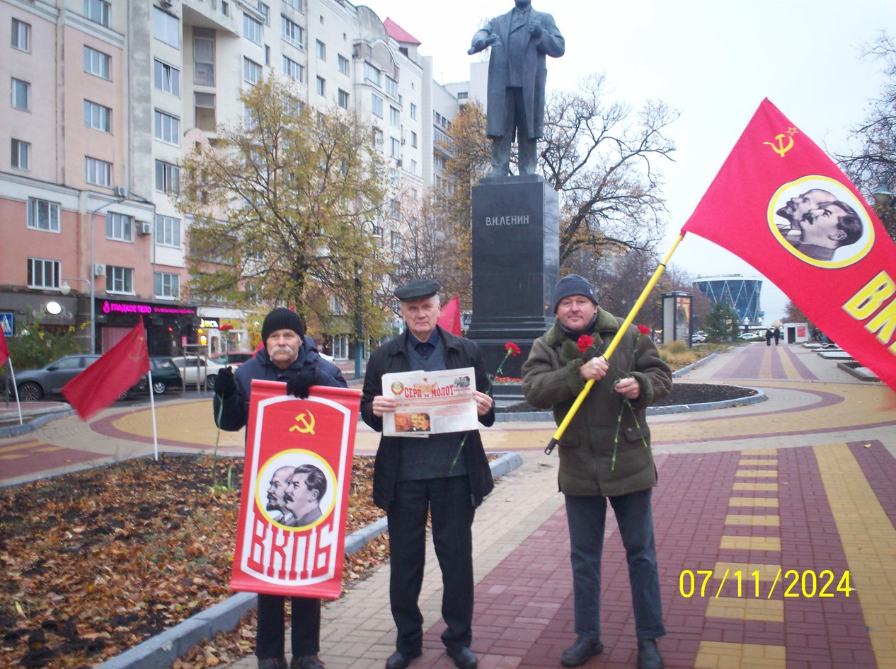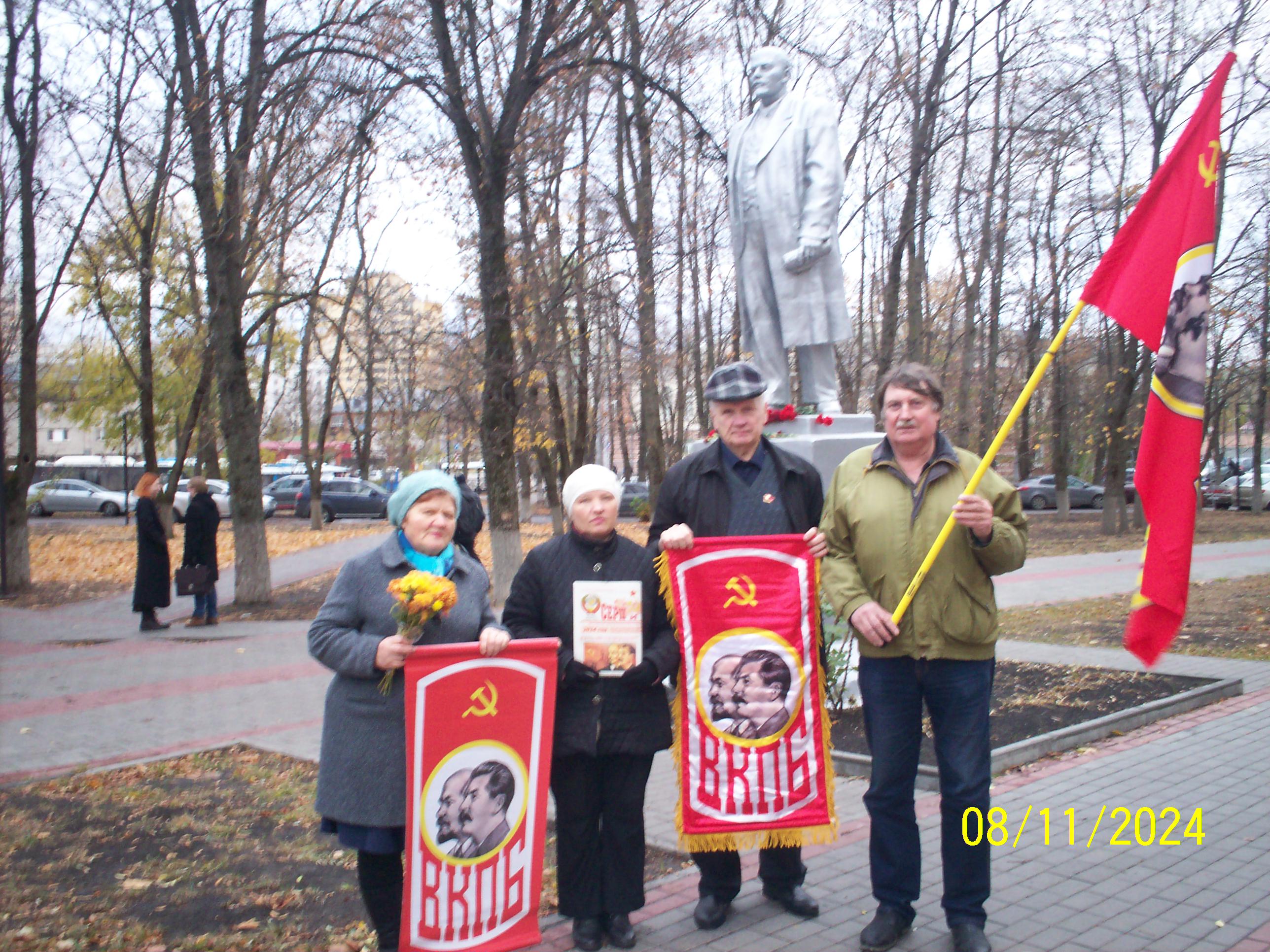 Были возложены цветы в городах и сёлах России 7-8 ноября 2024 г. представителями партийных организаций ВКПБ, в честь 107-й годовщины Победы Великой Октябрьской Социалистической Революции, 80 – летия освобождения Красной Армией от войск фашистской Германии западных земель Советского Союза и восстановление Государственной границы СССР, а также 33 – летию создания Н.А. Андреевой Всесоюзной Коммунистической Партии Большевиков, к подножиям памятников побед Великой Октябрьской Социалистической Революции и « Огням Вечной Славы», павшим за нашу Советскую Родину.