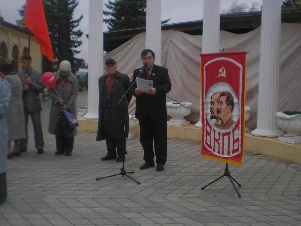 Перед собравшимися выступил секретарь Ставропольского краевого комитета ВКПБ т. Дегтяренко Н.А., зачитавший Поздравление ЦК ВКПБ с праздником 1 - Мая – Днём международной солидарности трудящихся. Присутствующие встретили это поздравление аплодисментами. Выступили представители всех партий и ветеранских организаций. Читали стихи.