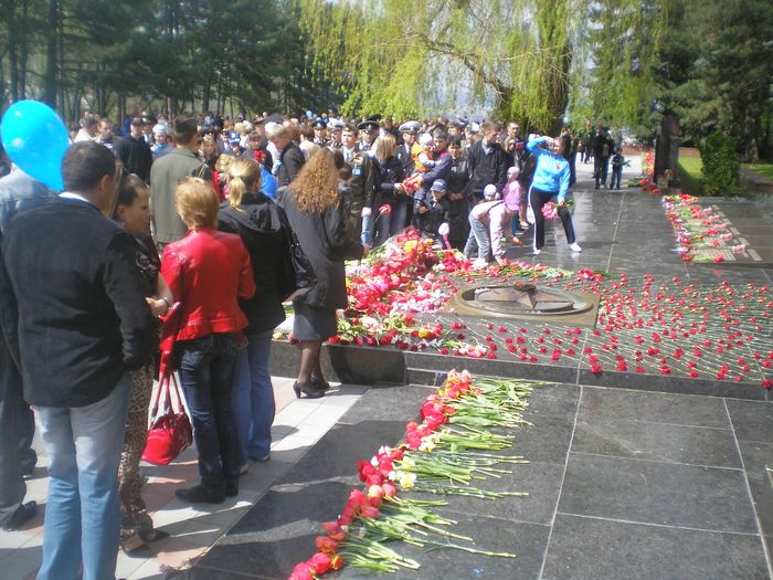 После возложения цветов Администрации г. Пятигорска, большевики, к великой радости присутствующих, возложили к "Огню Вечной Славы" венок с портретом И.В.Сталина и цветы. Жители и отдыхающие с удовольствием фотографировались у венка с портретом Сталина.
