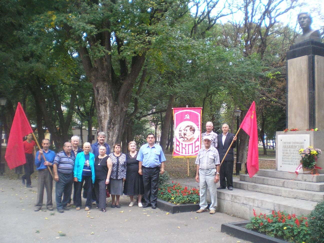 Были выставлены Штандарт ВКПБ и склонены красные флаги к памятнику т. Анджиевского Г.Г. В этот день были распространены газеты: “Серп и Молот” и “Рабоче-крестьянская правда”, листовки: “Возрождение большевизма в СССР”, “Куда ведёт “Болотная оппозиция”. Перед собравшимися представителями партийных организаций ВКПБ выступил т. Дегтяренко Н.А. – член ЦК ВКПБ, рассказавший о революционной деятельности и трагической гибели т. Анджиевского Г.Г. 31 августа 1919 года на г. Казачка от рук белогвардейцев.