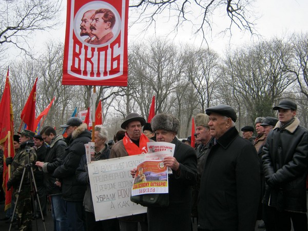 23 февраля 2012 г. в г. Краснодаре прошел своеобразно.....Имея “опыт” волеизъявления народа, когда 10 декабря 2011г. возник несанкционированный митинг в центре города, были стянуты около тысячи полицейских и ОМОН, Администрация со страхом разрешила провести праздник в Первомайском парке (ныне переименован в Чистяковскую рощу). На митинге, проводимом Союзом Советских офицеров приняли участие: ВКПБ, КПРФ, КПСС, ЛДПР и делегаты из районов Краснодарского края. Звучали речи прославления и доблести Красной Армии. Большевики со Штандартом ВКПБ распространяли газеты “Серп и Молот”, листовки: “Президентским выборам – бойкот”, “Рабоче-крестьянскую правду”, календари. Мы слышим звуки одобренья, не в сладком рокоте хвалы, а в диких криках озлобленья!