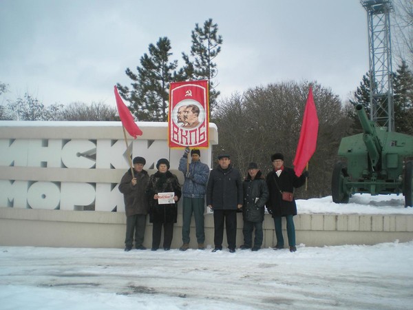 В пос. Ильском Северского района Краснодарского края у памятника В.И. Ленина 8-го Марта 2012 года Всесоюзная Коммунистическая Партия Большевиков отметила Международный День солидарности в борьбе трудящихся женщин. Мы поздравляли прохожих женщин с 8-ым Марта и вручали им большевистскую печать: “Рабоче – крестьянскую правду” и листовки с материалом, взятым из сайта ВКПБ. Интересующимся нашей печатью и нашим мероприятием, женщинам и молодым девушкам объясняли: Что сегодня, всем нам, праздновать НЕЧЕГО. Что пришло время внимательно читать наши газеты и вникать в суть ПОЛИТИКИ. Что виновен во всех наших бедах человеконенавистнический капиталистический строй, с его частной собственностью на орудия и средства производства и властью капитала во главе с буржуазным государством. Что от этих монстров в первую очередь страдают труженицы-женщины, все трудящиеся мира. На примере геноцида женщин, только нашего посёлка: Закрыли восьмилетнюю школу № 24 и используют её для избирательных участков по классам и фальсификации выборов. Кто пострадал и остался без работы, без средств существования? Женщина – учитель! Закрыли приёмный пункт в больнице и на гране закрытия вся больница. Кто пострадал и пострадает? Женщина – здравоохранения и естественно больные женщины! Частная собственность на местах вышвырнула работников почты пятого участка в аварийное, не отапливаемое здание пищеблока школы №24. Кто работает и мучается, мёрзнет зимой, при температуре минус двадцать, постоянно болея и при этом получая мизерную зарплату? Женщины – работницы почты РФ! Кто в первую очередь был уволен или сокращён с социалистических заводов, фабрик, предприятий в интересах бизнеса? Тоже женщина! И кому больше всех досталось от двадцатилетнего кошмарного капитализма, навязанного нам предателями социализма? Конечно же, женщине – труженице! Поэтому сегодня перед нами встаёт наиглавнейшая задача о необходимости активизации борьбы женщин на СЕЛЕ за свои, прежде всего классовые интересы, за единство и солидарность в борьбе против капитализма, за Советскую власть и счастливое Социалистическое будущее.