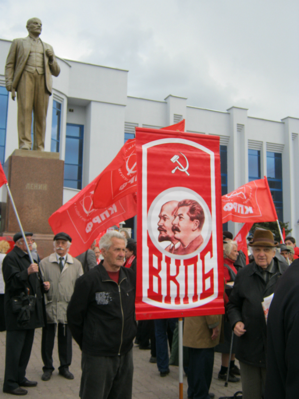 Большевики выставили Штандарт ВКПБ , красные флаги ВКПБ с серпом и молотом и изображением вождей В.И. Ленина и И.В. Сталина, красные флаги с серпом и молотом, распространялись листовки, проводилась агитационная работа, к памятнику В.И. Ленина возложены цветы. До начала митинга исполнялись революционные песни и песни о В.И. Ленине.