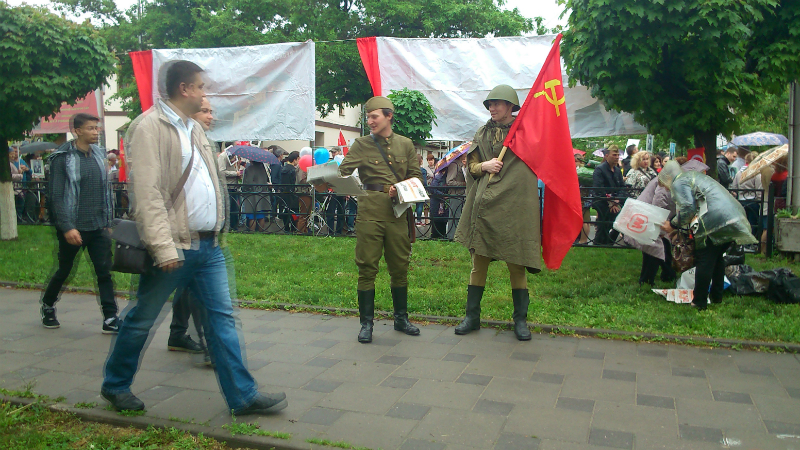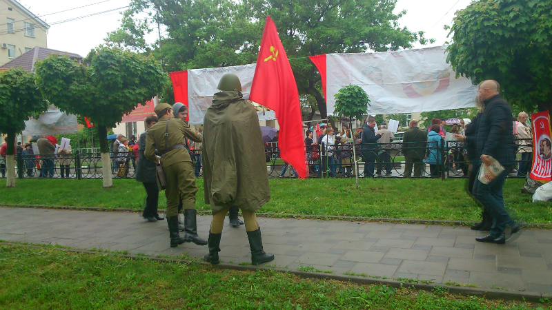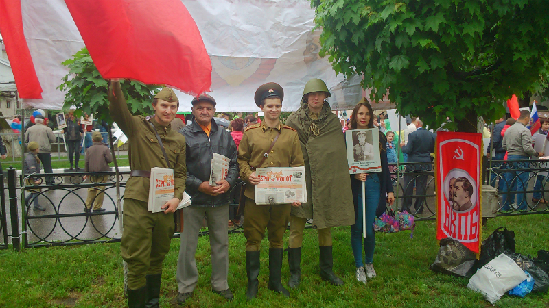 Митинг закрылся исполнением Сталинского Гимна СССР.
