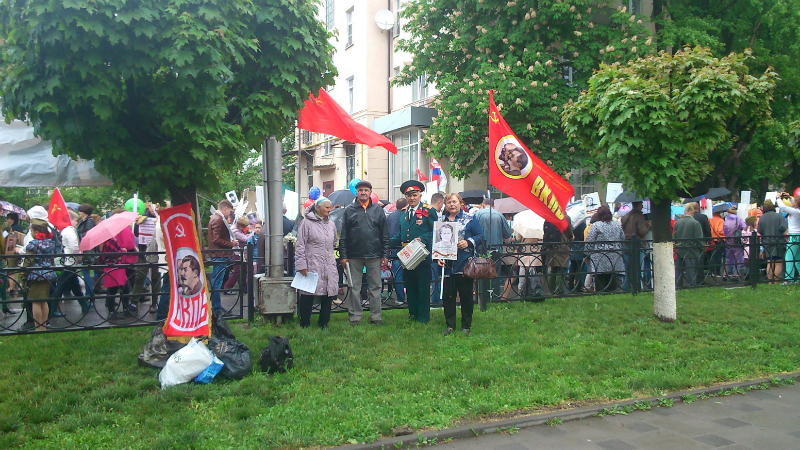 Митинг был организован Пятигорским отделением КПРФ, в котором принял участие и Пятигорский ГК ВКПБ. При очень жаркой погоде были выставлены Штандарт ВКПБ, красный флаг ВКПБ с зеркальным изображением В.И. Ленина и И.В. Сталина и красные флаги с серпом и молотом. Большевики имели на груди красные банты.
