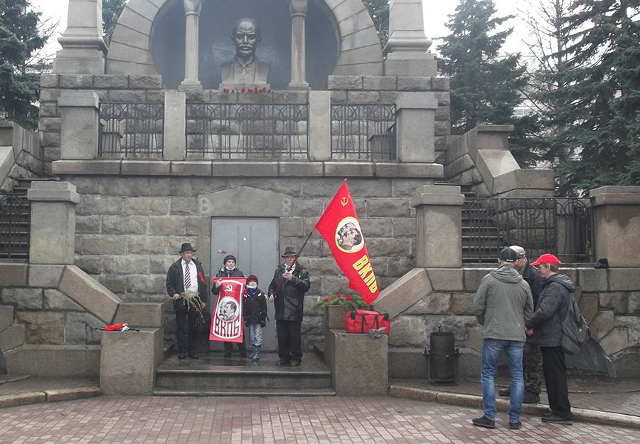 Были выставлены: Штандарт ВКПБ, красные флаги с серпом и молотом. Звучали песни о Ленине, распространялись газеты «Серп и Молот БОЛЬШЕВИКА». Перед собравшимися выступила товарищ О.Г. Петропавловская – тепло встреченная присутствующими.