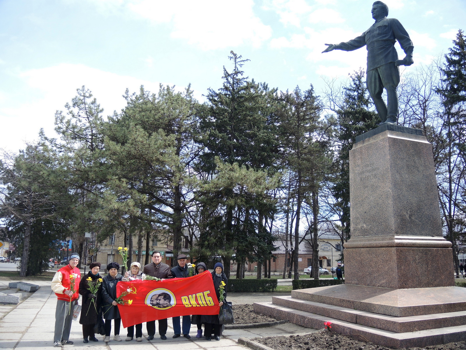 В г. Пятигорске 27 марта на пл. им. С.М. Кирова, у памятника С.М. Кирова представители партийных организаций ВКПБ Пятигорского ГК ВКПБ в честь 135-летия со дня рождения Сергея Мироновича Кирова, при развёрнутом красном знамени ВКПБ, с изображением вождей В.И. Ленина и И. В. Сталина, возложили цветы к подножию памятника…