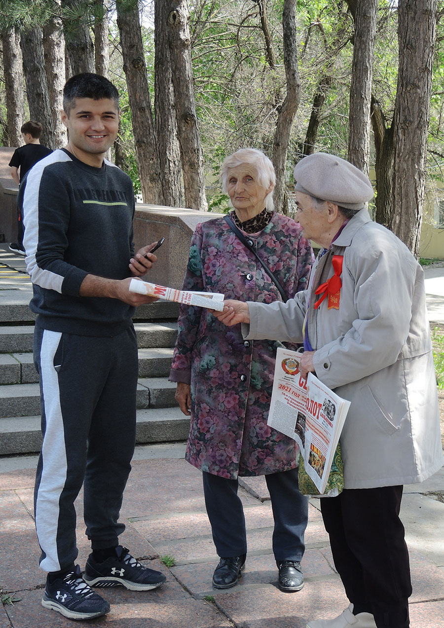 После военного парада большевики возложили цветы к «Огню Вечной Славы» и к подножию памятника В.И. Ленина. Жители города тепло приветствовали большевиков и фотографировались на фоне вождей В.И.Ленина и И.В. Сталина…