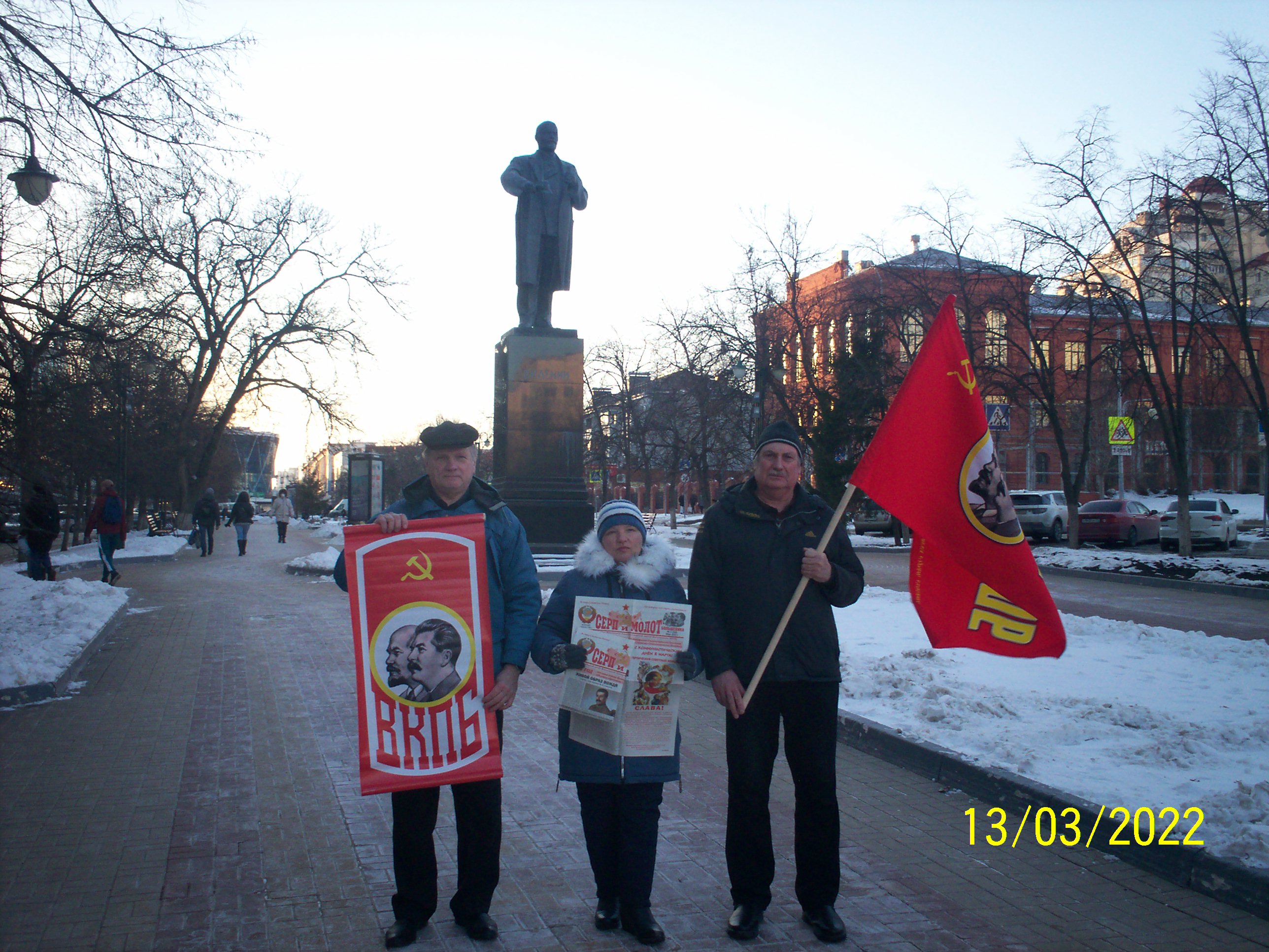 В г. Белгороде 13 марта 2022 г. представители партийных организаций ВКПБ возложили цветы к подножию памятника В.И. Ленина, в честь 34-летия возрождения большевизма Н.А. Андреевой.